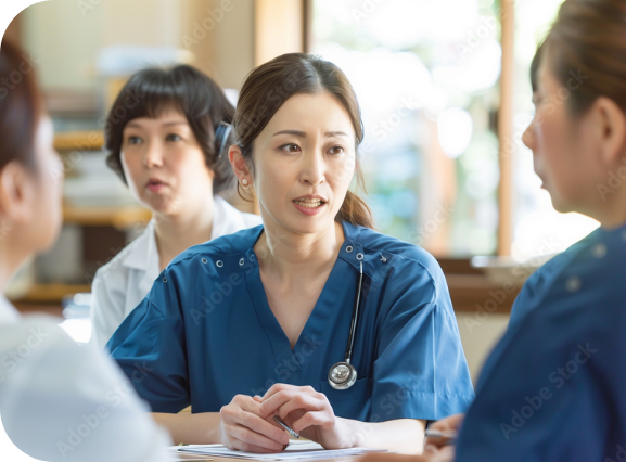 困ったときはすぐに相談アースケアではチームで支え合う文化が根付いており、困ったときはすぐに相談できる風通しの良さが特徴です。 日々のミーティングや情報共有を通じて、働きやすい関係性を築いています。